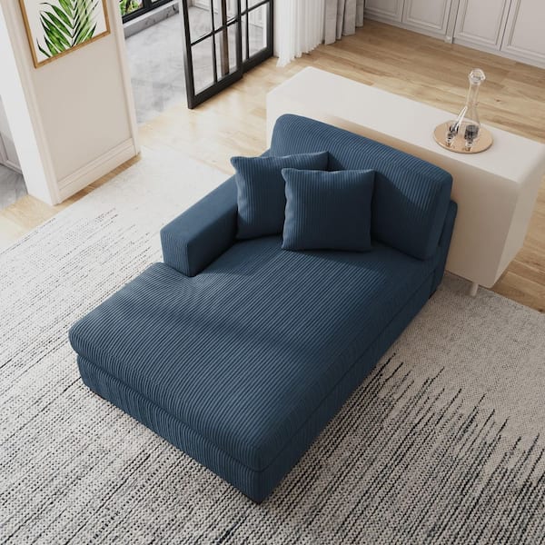 Navy Blue Corduroy Polyester Left Arm Facing Sectional Chaise Lounge with Wood Legs (Set of 1)