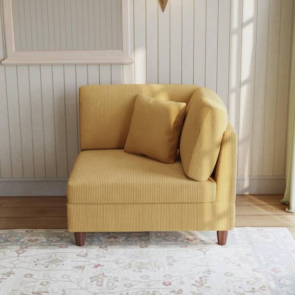Orange Corduroy Fabric Right Arm Facing Sectional Corner Arm Chair with Wood Legs (Set of 1)