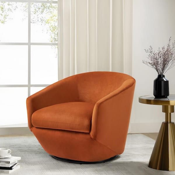 Orange Velvet Swivel Accent Arm Chair with Metal Base(Set of 1)