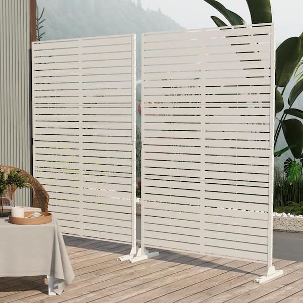 UIXE 47.2 in W. Galvanized Steel Garden Fence Outdoor Privacy Screen Garden Screen Panels in White (2-pack)