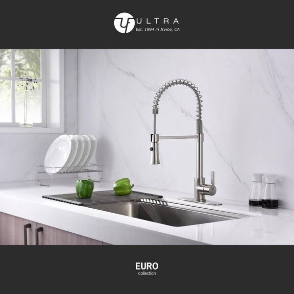Euro Spring Spout Single-Handle Pull-Down Sprayer Kitchen Faucet w/Accessories Rust and Spot Resist in Brushed Nickel