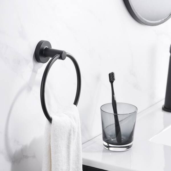 Kree Wall Mounted Towel Ring in Matte Black