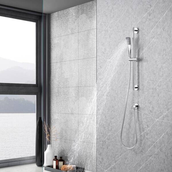 Twist 1-Spray Rectangle High Pressure Multifunction Wall Bar Shower Kit with Hand Shower in Polished Chrome