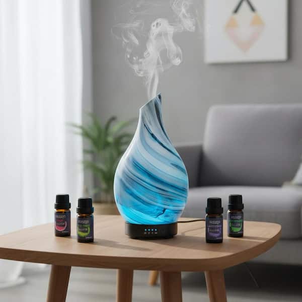 Ultrasonic Essential Oil Diffuser Set : 6 Oils, 4 Timers, 7 LED Lights, Auto Shut-Off
