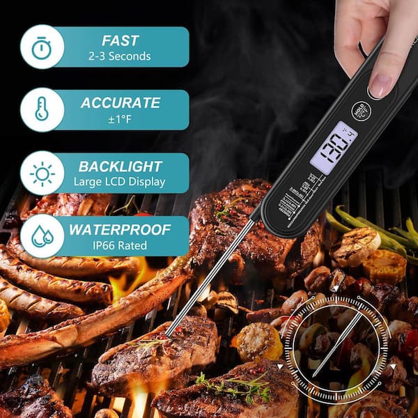 Digital Meat Thermometer in Black, Instant Read, Waterproof, Cooking, Grill, Food, Candy Thermometer with Magnetic Back
