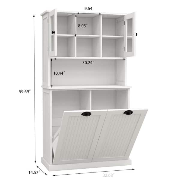 32.68 in. W x 14.57 in. D x 59.69 in. H 2-Compartment Tilt-out White MDF Bathroom Linen Cabinet