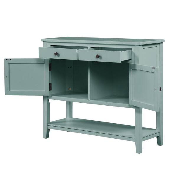 39 in. Retro Green Modern Console Table Sofa Table with 2-Drawers, 2-Cabinets and 1-Shelf