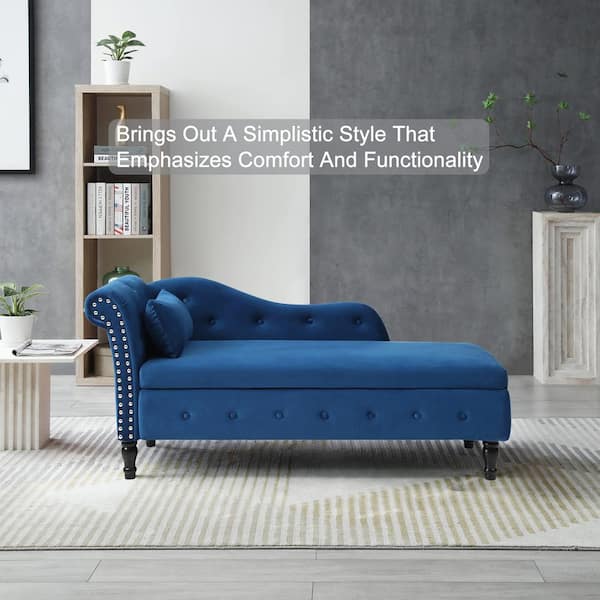 60 in.W Blue Modern Multifunctional Storage Velvet Tufted Chaise Lounge with 1 Pillows