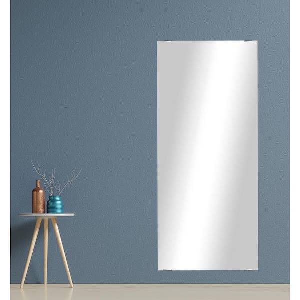 Modern Rustic (15in. W x 54in. H) Frameless Rectangular Wall Mirror with Chrome Square Clips