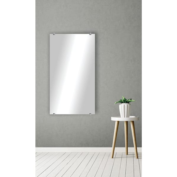 Modern Rustic (54in. W x 30.5in. H) Frameless Rectangular Wall Mirror with Chrome Oval Clips