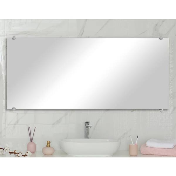 Modern Rustic (58in. W x 29.5in. H) Frameless Rectangular Wall Mirror with Chrome Oval Clips
