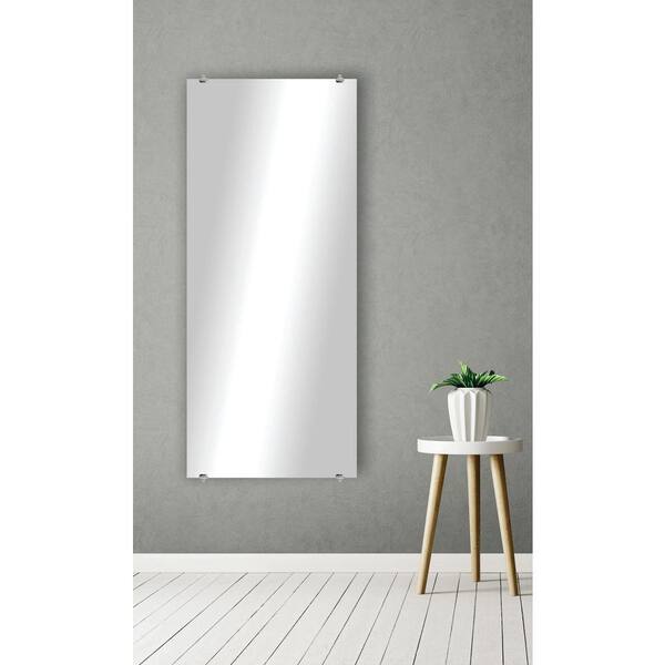 Modern Rustic (72in. W x 30.5in. H) Frameless Rectangular Wall Mirror with Chrome Oval Clips