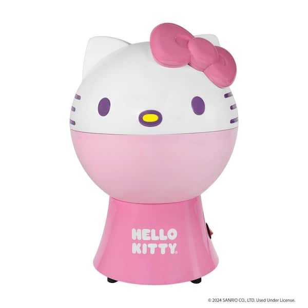 Uncanny Brands 1200W Hello Kitty Pink and White Hot-Air Popcorn Machine, 3 oz kernel capacity.