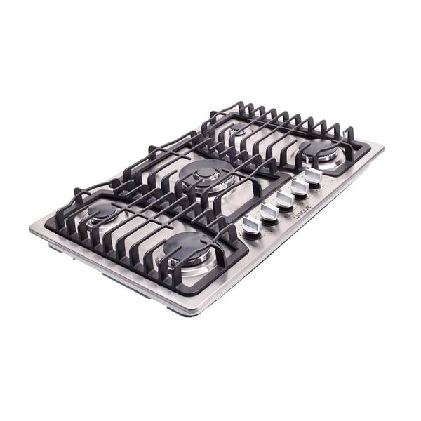 30 in. Gas Dual Ignition Cooktop in Stainless Steel with 5 Sealed Burners