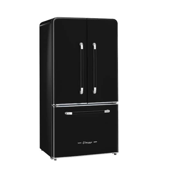 Classic Retro 36 in 21.4 cu. ft. 3-Door French Door Refrigerator with Ice Maker in Midnight Black, Counter Depth