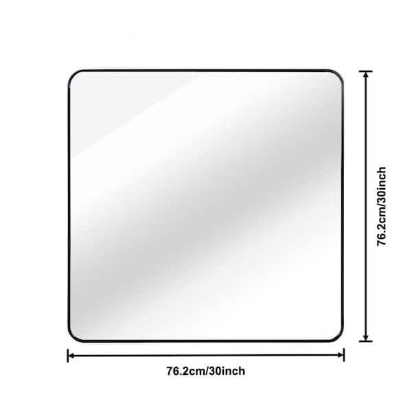 Unique Black 30 in. W x 30 in. H Decorative Square Aluminum Alloy Framed Mirror, Wall Mirror, Vanity Mirror