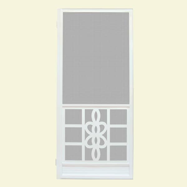 36 in. x 80 in. Catalina White Outswing Metal Hinged Screen Door