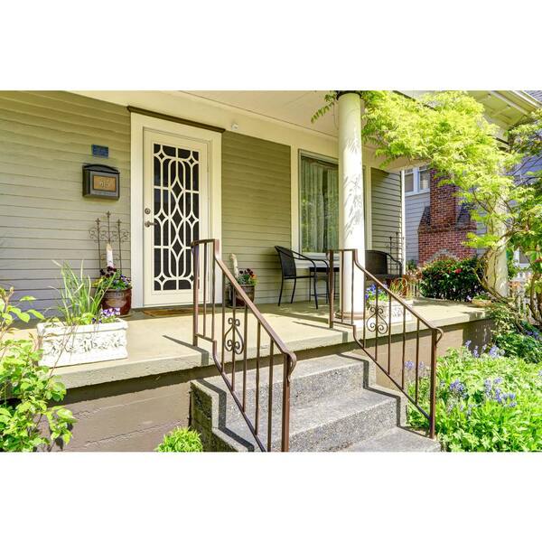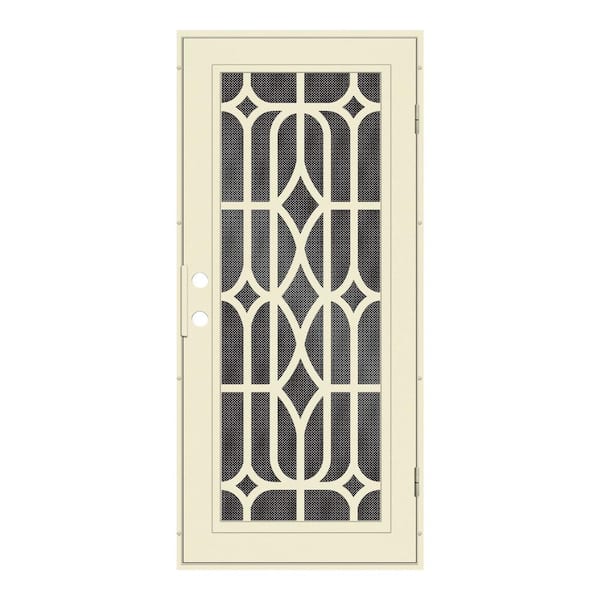 Essex 30 in. x 80 in. Left-Hand Outswing Beige Aluminum Security Door with Black Perforated Metal Screen