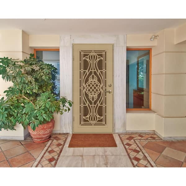 Manchester 36 in. x 80 in. Right Hand/Outswing Desert Sand Aluminum Security Door with Bronze Perforated Metal Screen