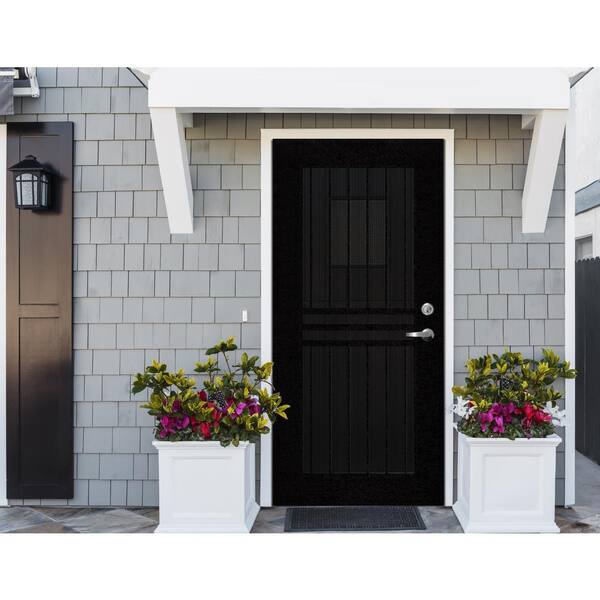 Plain Bar 32 in. x 80 in. Right-Hand/Outswing Black Aluminum Security Door with Charcoal Insect Screen