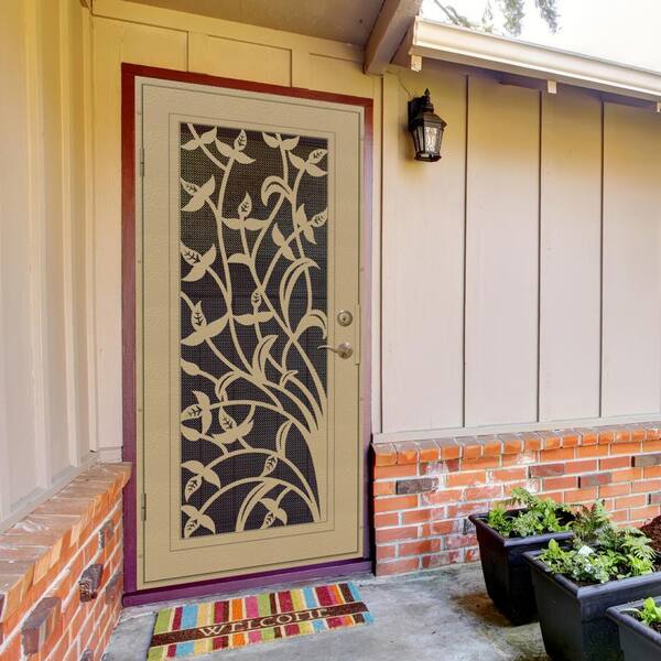 Yale 30 in. x 80 in. Right Hand/Outswing Desert Sand Aluminum Security Door with Black Perforated Metal Screen