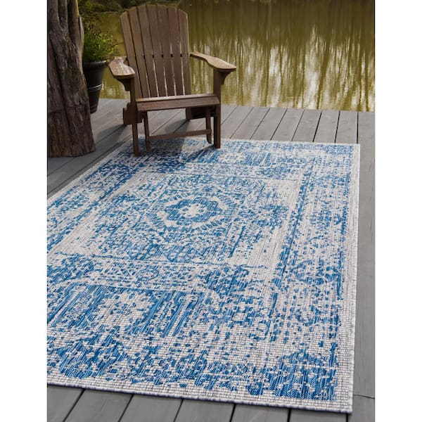 Azure Blue Timeworn Outdoor 4 ft. x 6 ft. Area Rug