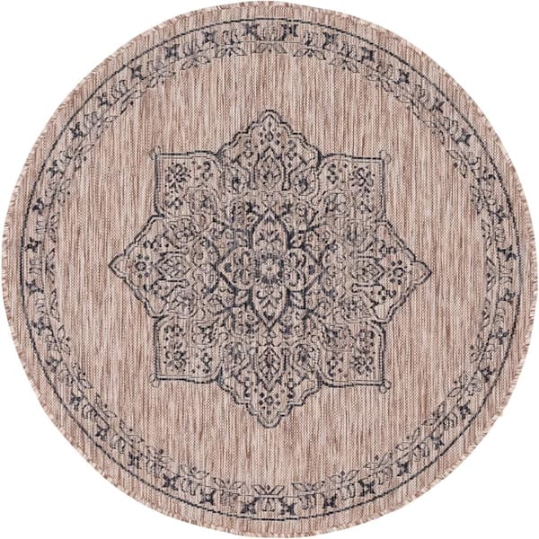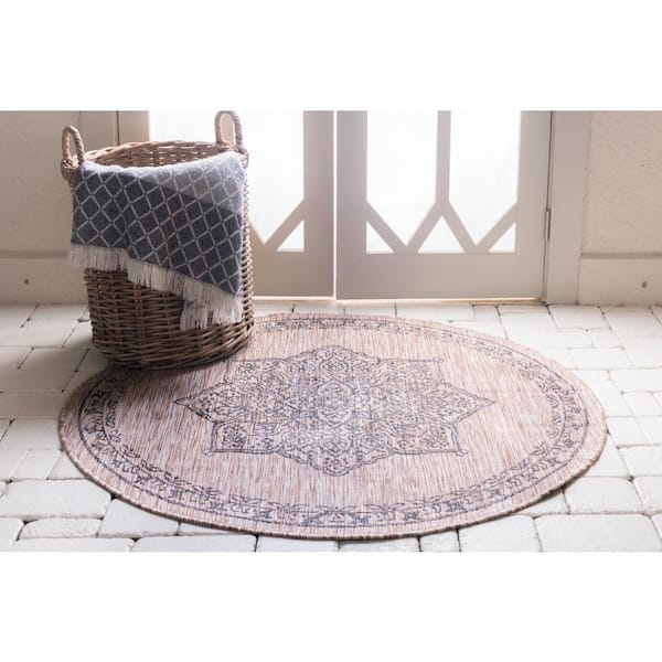Beige Antique 4 ft. x 4 ft. Round Indoor/Outdoor Area Rug