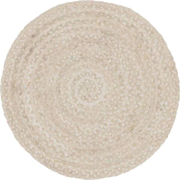 Braided Chindi Ivory 3 ft. x 3 ft. Round Area Rug