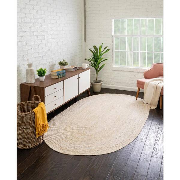 Braided Jute Dhaka White 3' 3 x 5' 1 Area Rug