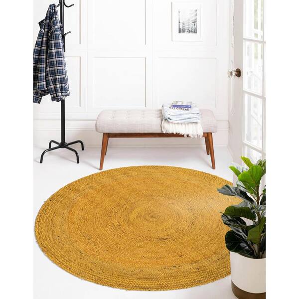 Braided Jute Dhaka Yellow 3 ft. 3 in. x 3 ft. 3 in. Area Rug