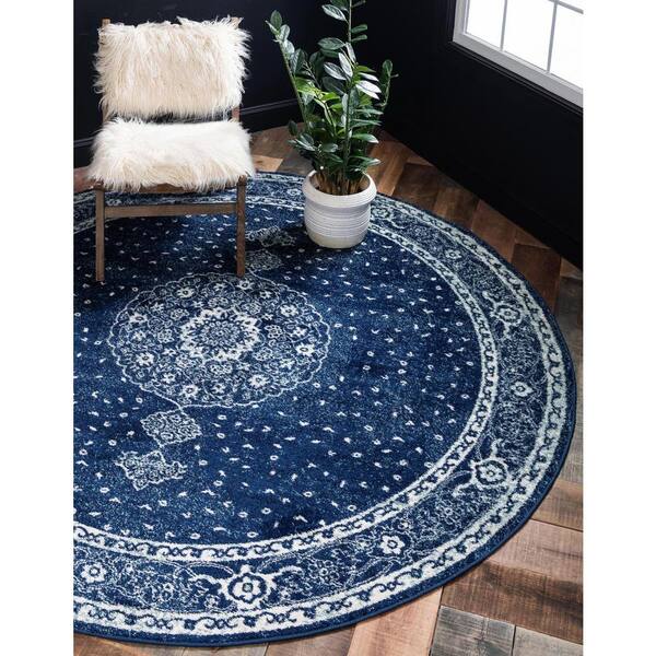 Bromley Midnight Navy Blue 3 ft. Round Area Rug