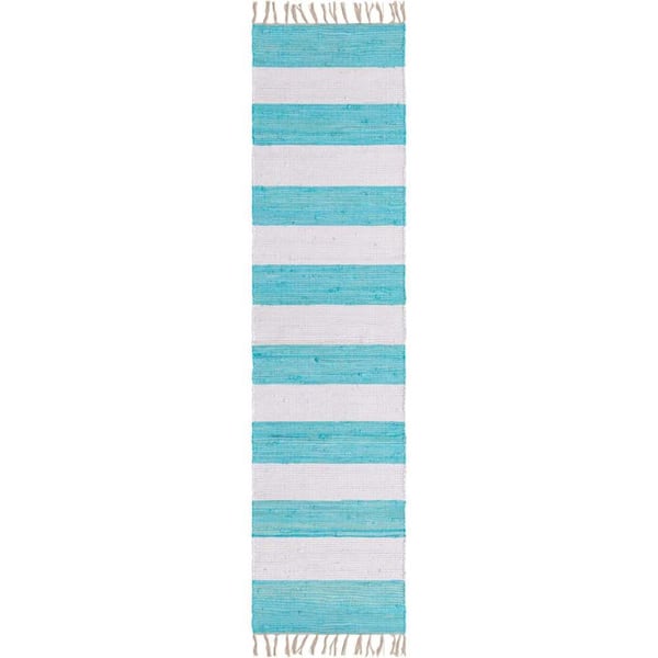 Chindi Rag Striped Turquoise and Ivory 2 ft. 2 in. x 8 ft. Area Rug
