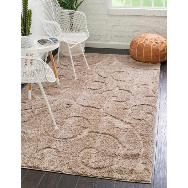 Floral Shag Carved Beige 9' 0 x 12' 0 Area Rug