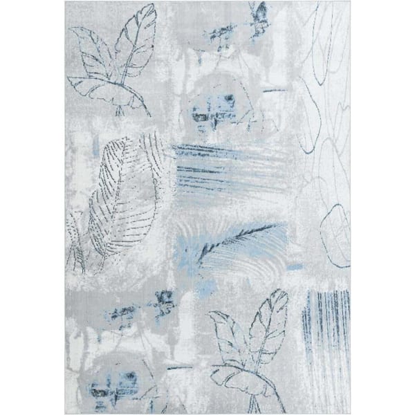 Kamala Washable Foliage Ivory Gray 10 ft. x 14 ft. 1 in. Area Rug