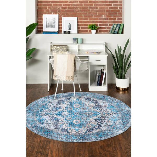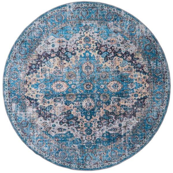 Mangata Mary Blue 7 ft. Round Machine Washable Area Rug