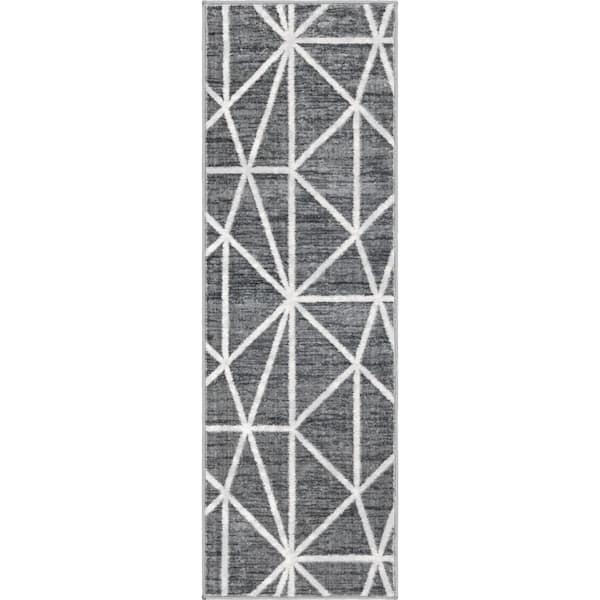 Matrix Trellis Geometric Dark Gray 3 ft. x 10 ft. Runner Rug