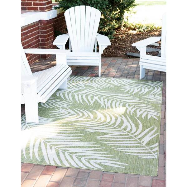 Outdoor Botanical Palm Green 5 ft. 1 in. x 8 ft. Area Rug
