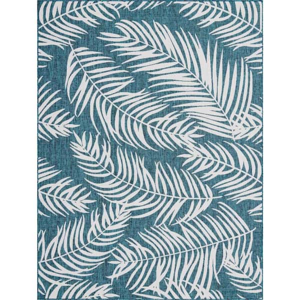 Outdoor Botanical Palm Teal 9 ft. x 12 ft. Area Rug
