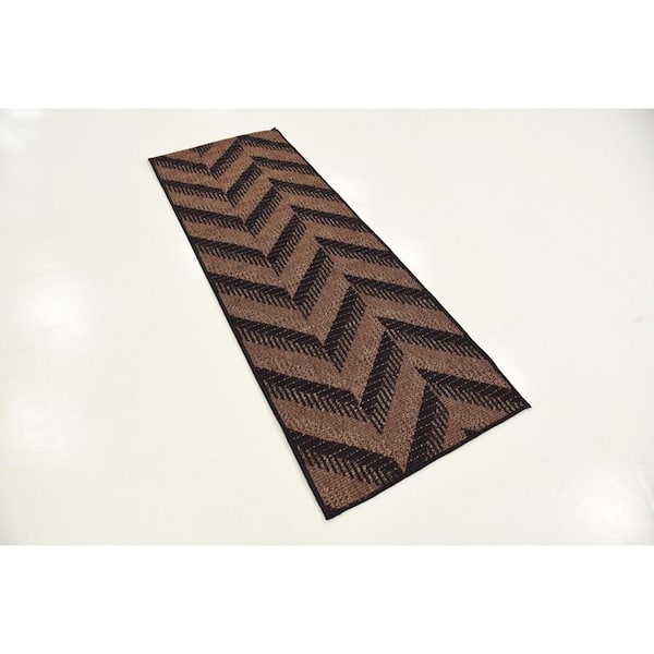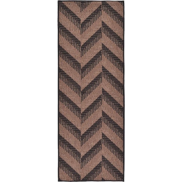 Outdoor Chevron Brown 2' 2 x 6' 0 Runner Rug