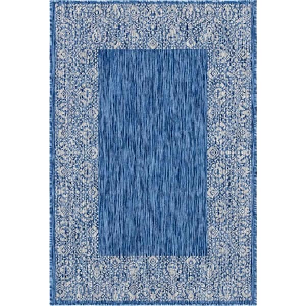 Outdoor Floral Border Azure Blue 4 ft. x 6 ft. Area Rug