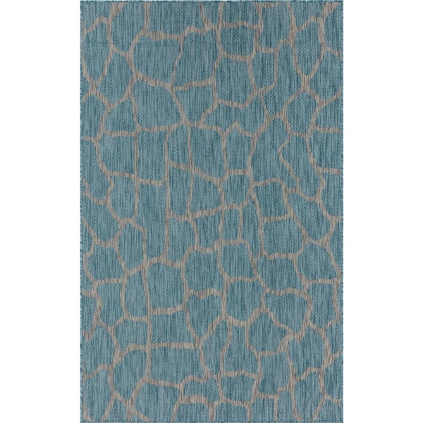 Outdoor Giraffe Aqua Blue 4 ft. x 6 ft. Area Rug