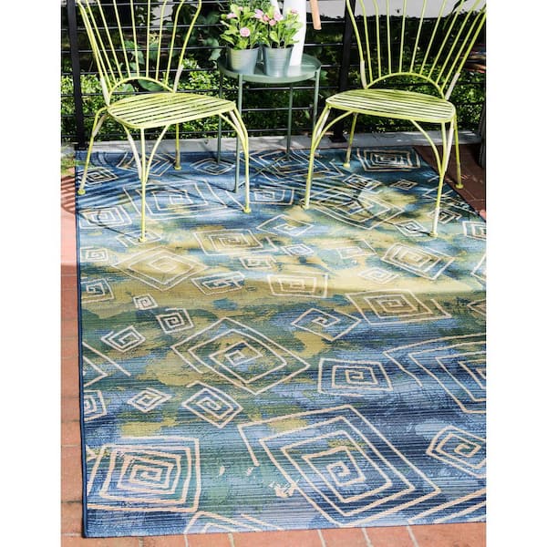 Outdoor Vortex Blue 5' 3 x 8' 0 Area Rug