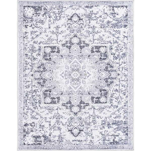 Renaissance Roma Light Gray 8 ft. x 10 ft. Machine Washable Area Rug