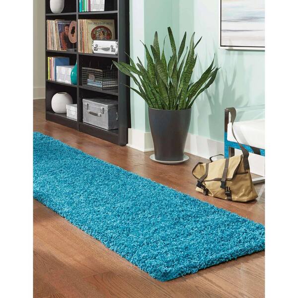 Solid Shag Turquoise 2' 2 x 6' 5 Area Rug