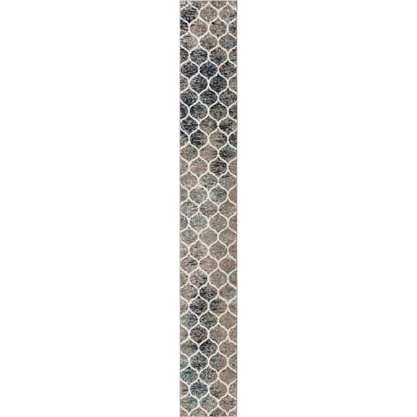 Trellis Frieze Rounded Blue Multi 2 ft. x 13 ft. Rug