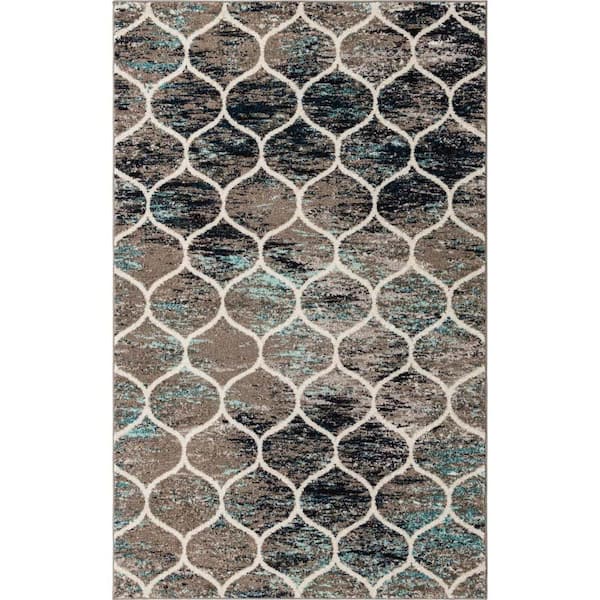 Trellis Frieze Rounded Blue Multi 5 ft. x 8 ft. Area Rug