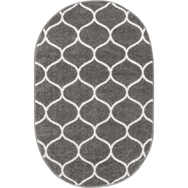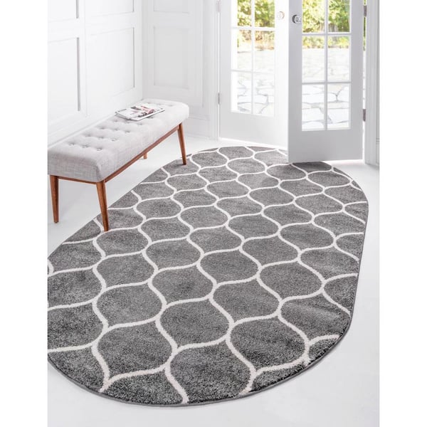 Trellis Frieze Rounded Dark Gray 5 ft. x 8 ft. Area Rug