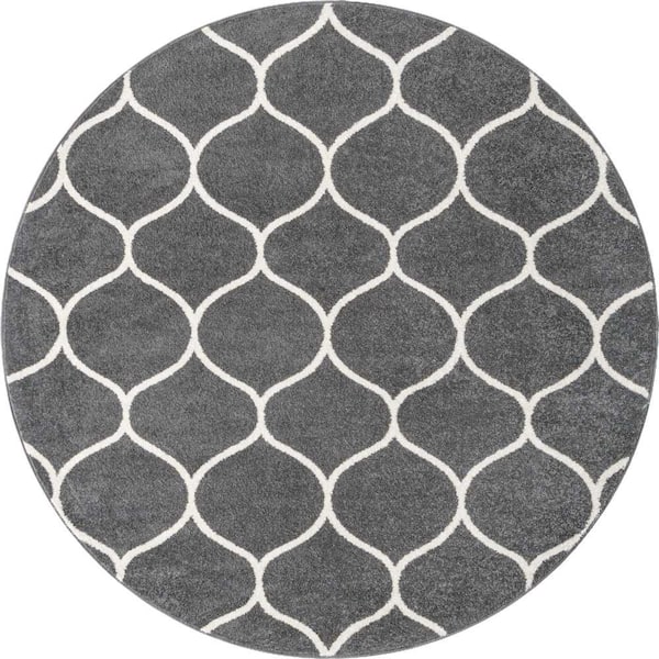 Trellis Frieze Rounded Dark Gray 8 ft. x 8 ft. Area Rug