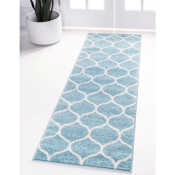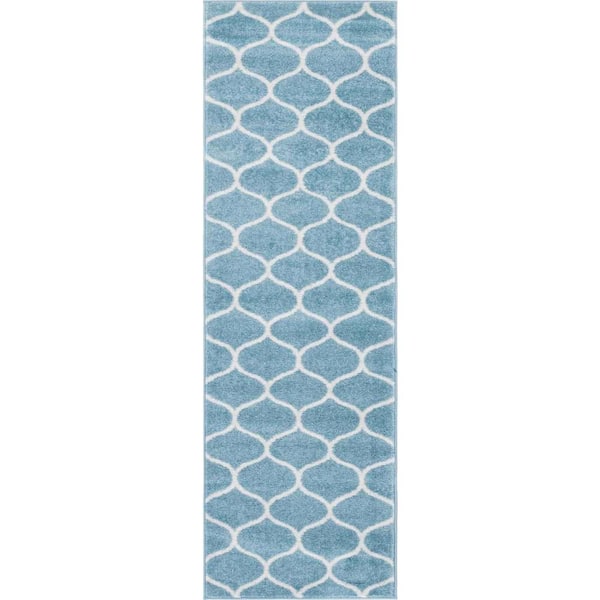 Trellis Frieze Rounded Light Blue 2 ft. x 6 ft. Area Rug