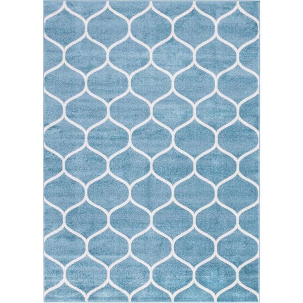 Trellis Frieze Rounded Light Blue 8 ft. x 11 ft. Area Rug